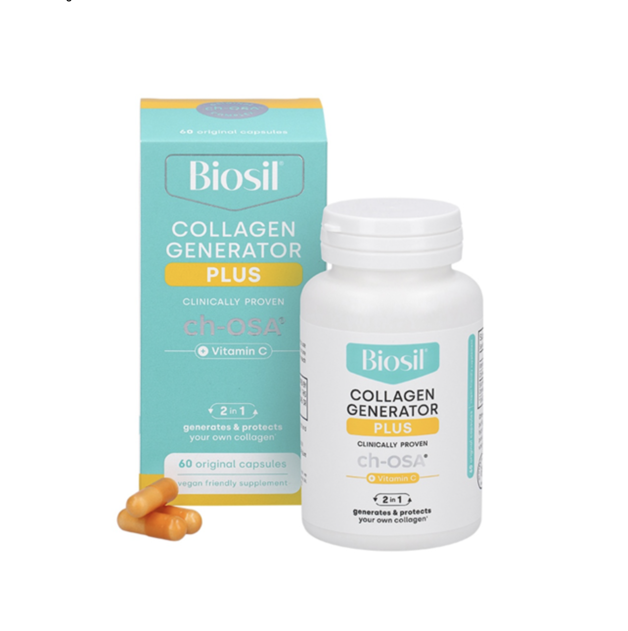 Sudedamosios dalys: užpildai (mikrokristalinė celiulozė, kalcio fosfatai, polivinilpolipirolidonas, skersinio ryšio natrio karboksimetilceliuliozė, hidroksipropilceliuliozė), vitaminas C (L-askorbo rūgštis, stabilizatorius etilceliuliozė), kukurūzų krakmolas, imbierų (lot. Zingiber officinale Rose) šaknų sausasis ekstraktas (5 % gingerolių), stabilizatorius (riebalų rūgščių mono- ir digliceridai), azijinių centelių (lot. Centella asiatica (L.) Urb.) antžeminių dalių sausasis ekstraktas (3 % triterpenų), N-acetil-D-gliukozamino (iš vėžiagyvių), lipnumą reguliuojančios medžiagos (riebalų rūgščių magnio druskos, silicio dioksidas), Lactobacillus reuteri PBS072, para-aminobenzoinė rūgštis (PABA), cinko bisglicinatas, Lactobacillus Casei subsp. rhamnosus LRH020, mangano gliukonatas, sojų (lot. Glycine max (L.) Merr.) sėklų sausasis ekstraktas (40 % izoflavonų, 25 % genisteinų), L-selenometioninas (selenas), dažiklis (E172), Lactobacillus plantarum PBS067, silicio dioksidas, vitaminas D (cholekalciferolis), vitaminas B2 (riboflavinas), vitaminas B1 (tiamino hidrochloridas), juodųjų pipirų (lot. Piper nigrum) vaisių sausasis ekstraktas (95 % piperino), foliatai (pteroilmonoglutamo rūgštis), biotinas (D-biotinas).